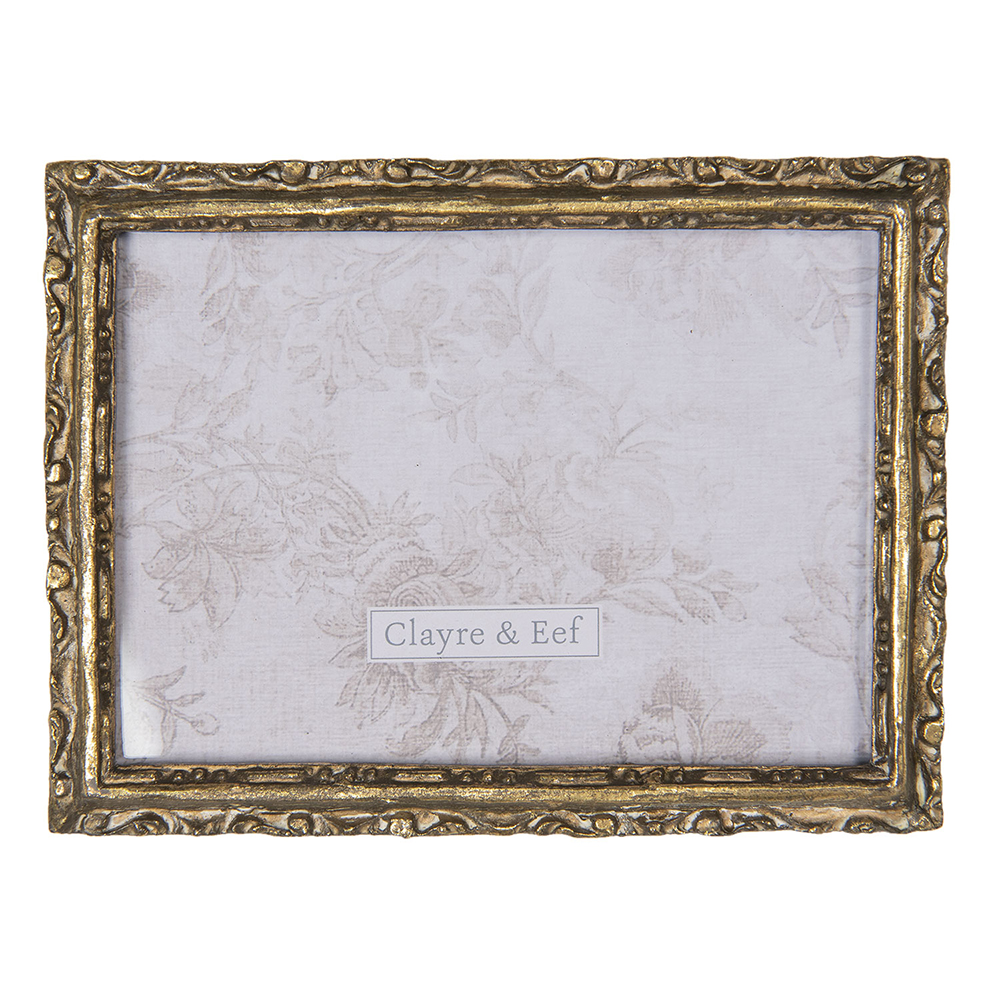 Mooie rechthoekige fotolijst met een bewerkte rand in een oud goudkleur, leuk in een landelijke sfeer!