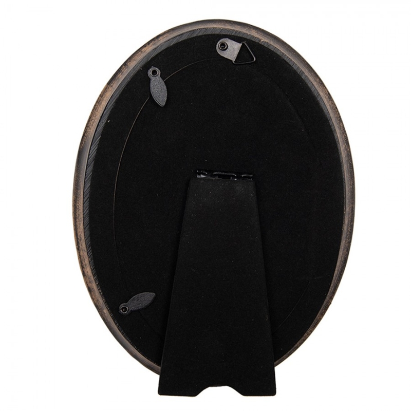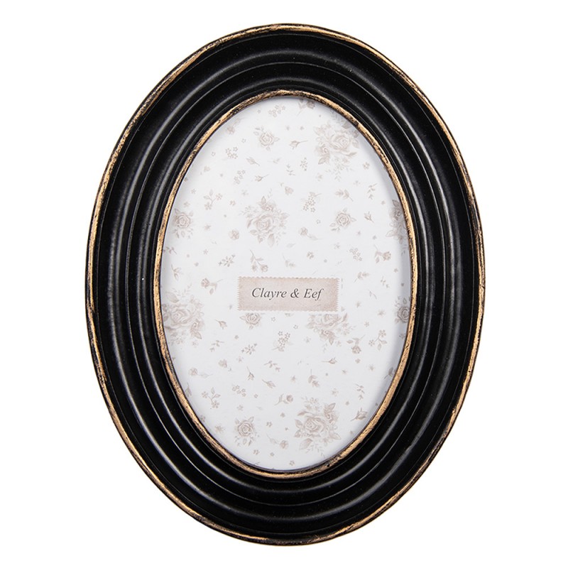 Prachtige fotolijst in een ovale vorm. Deze mooie zwarte fotolijst is op de rand afgewerkt met een goudkleurige finish.