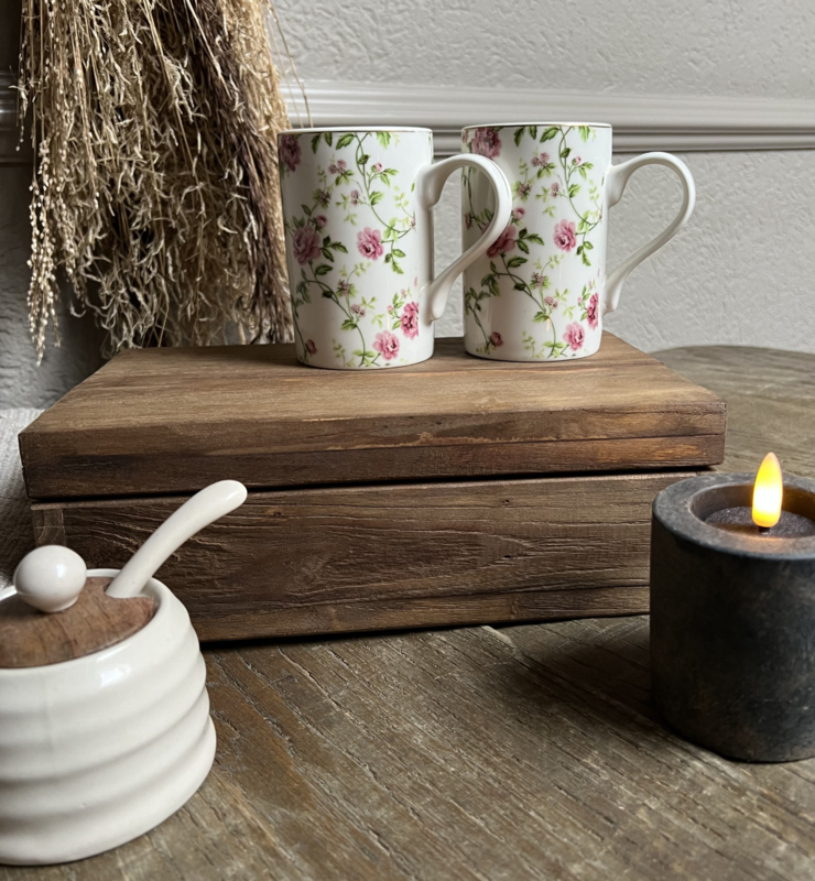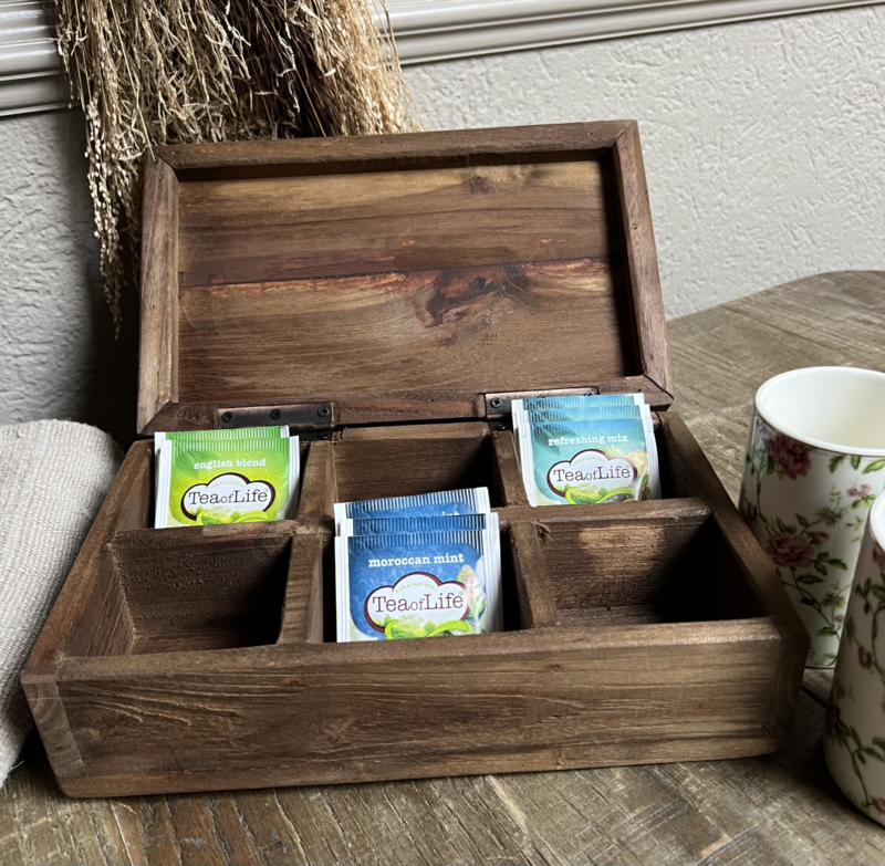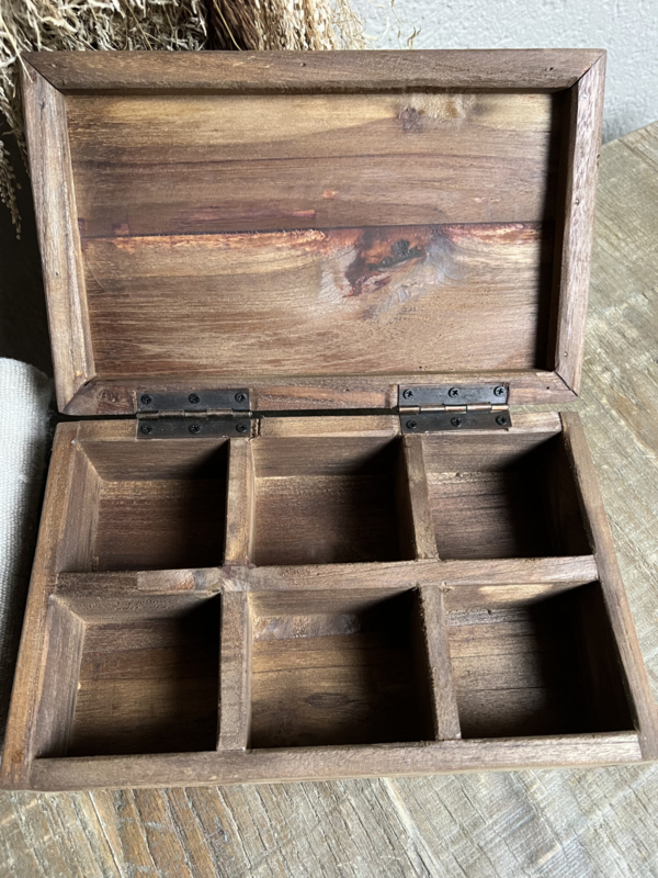 Mooie strakke stoer landelijke theedoos voorzien van 6 vakken voor thee.