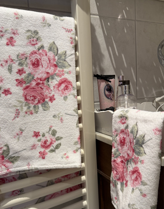 Prachtig gastendoekje met het elegant rozendesign Bella. Het gastendoekje is gemaakt van 100% zachte absorberende katoen waardoor het comfortabel en heerlijk zacht aanvoelt op de huid.