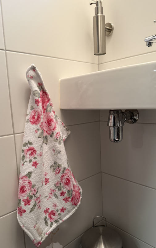Het mooie rozen patroon met roze en groentinten geeft een charmante en vrouwelijke uitstraling waardoor het een mooie toevoeging is aan elke badkamer of toilet.
