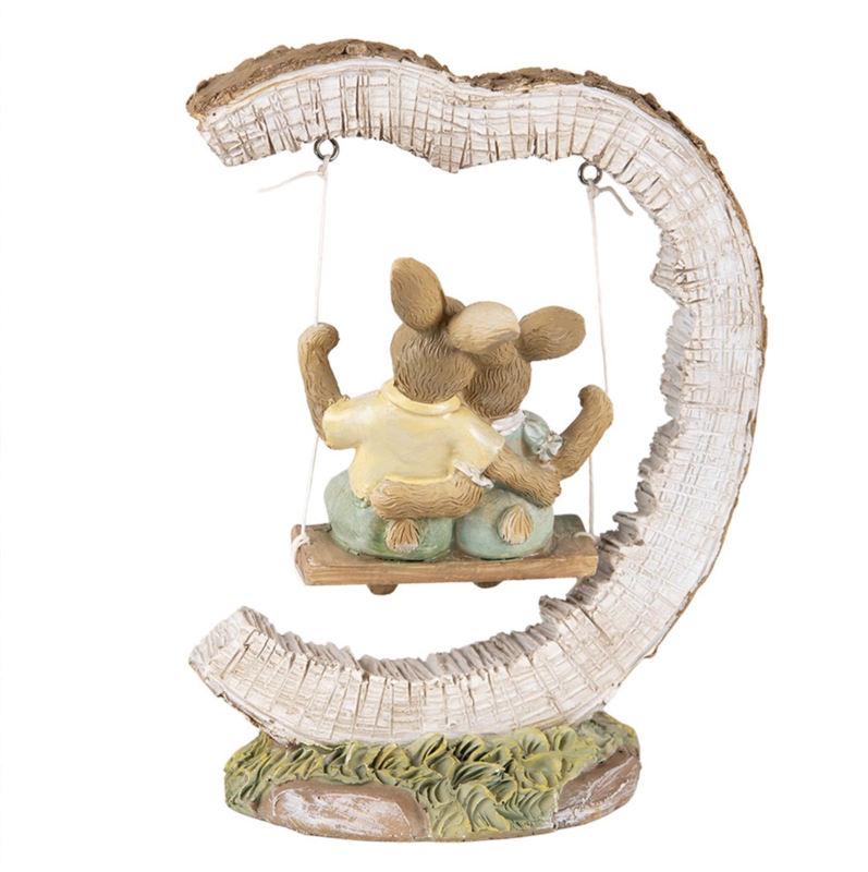 Een prachtige decoratie dit beeld van 2 verliefde konijntjes samen op een schommel!