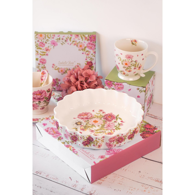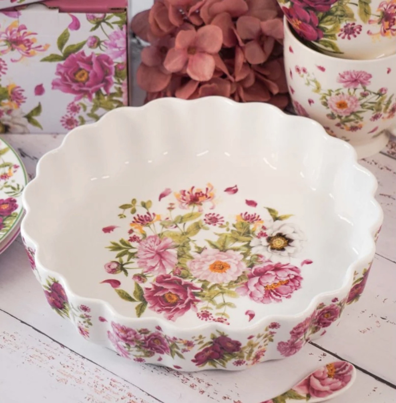 Of je nu een heerlijke groenteschotel of appeltaart bakt deze schaal staat in een romantisch of landelijk interieur perfect door het mooie pioenroos motief!