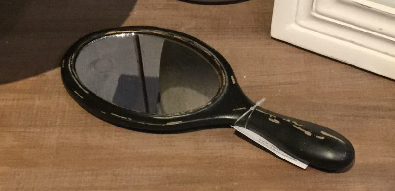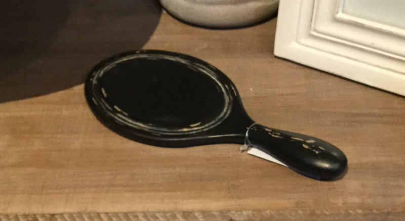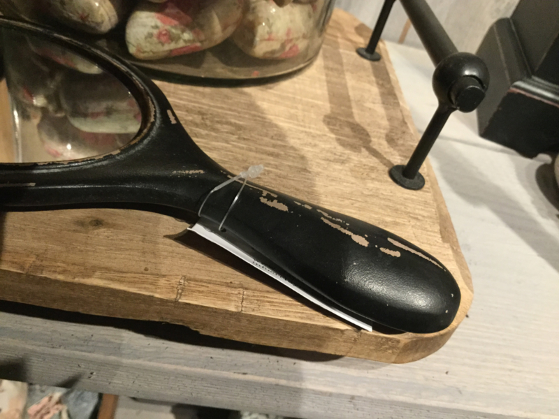 Leuke handspiegel voor op je landelijke toilettafel of ter decoratie! De handspiegel is zwart en oud gemaakt daardoor heeft hij een brocante uitstraling.