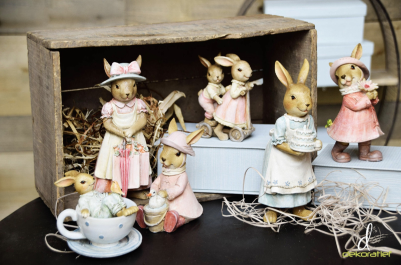 Zo leuk dit decoratie beeldje van een kop en schoteltje met stippels en daarin een Bunny met op zijn knieen een klein vogeltje!€ 12,75