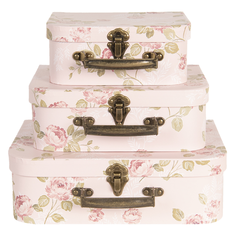 Zo leuk dit setje van 3 koffertjes met een mooie romantische rozenprint, verkrijgbaar in verschillende kleuren!