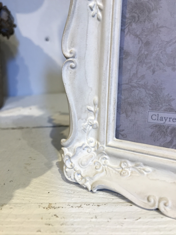 Mooi landelijk fotolijstje met bewerkte rand in een roomwitte kleur