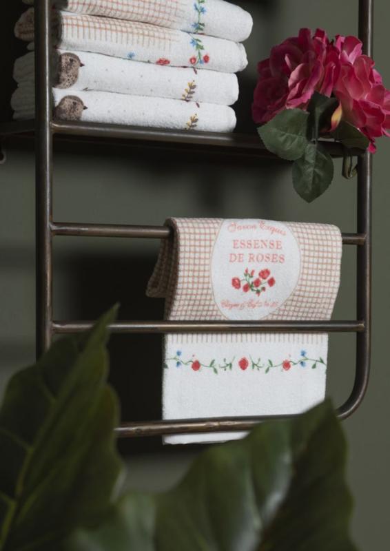 Mooi en handig gastendoekje met een romantische print van roosjes en ruitjes.
