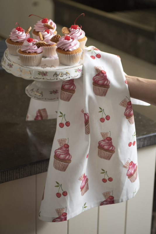 Fris en vrolijk dat is de nieuwe serie Cherry Cupcakes van Clayre & Eef zeker! De katoenen stoffen hebben een leuke print van Cupcakes en kersen in combinatie met een rood/wit geruite stof. Het mooie van deze serie is dat er ook voor kinderen een keukenschort, ovenhandschoen en pannenlap verkrijgbaar is!