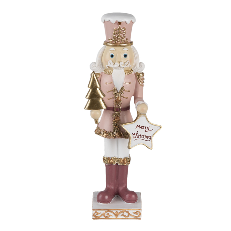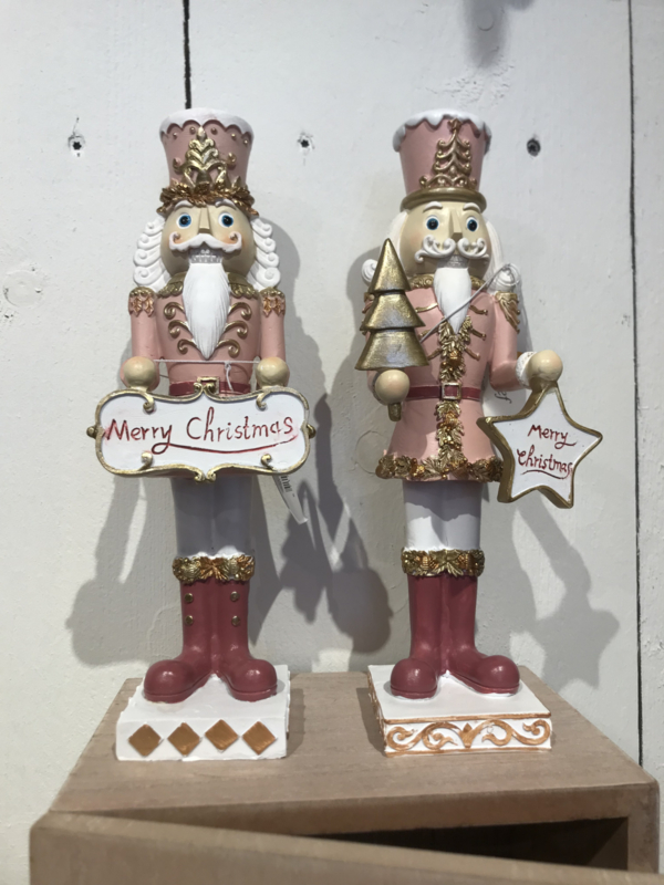 Prachtige decoratie van een notenkraker in diverse roze - en goud tinten. In zijn handen een ster met de tekst Merry Christmas en aan de andere kant een goudkleurige kerstboom!€ 21,95 € 16,50