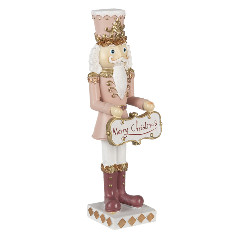 Prachtige decoratie van een notenkraker in diverse roze - en goud tinten en een bordje met de tekst Merry Christmas!