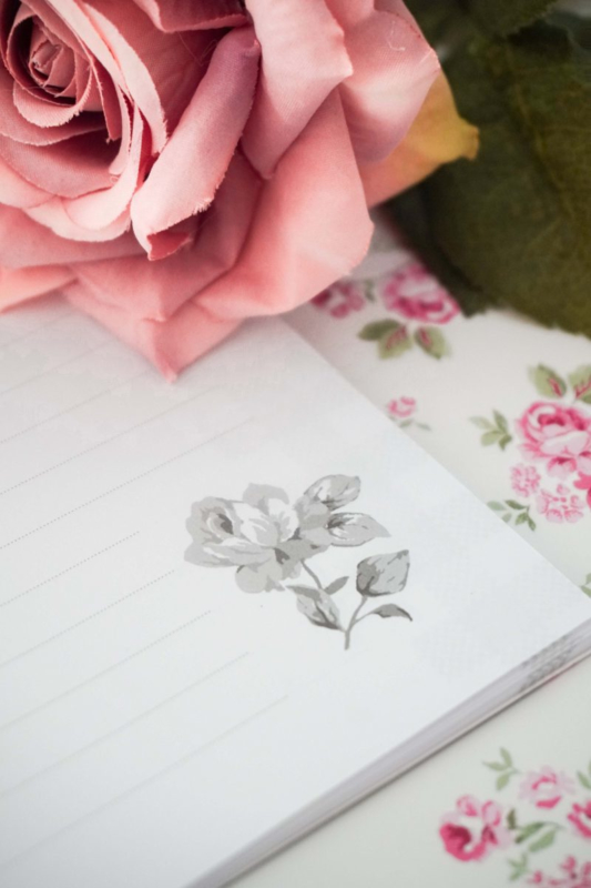 Leuk en gemakkelijk dit notitieboek van Isabelle Rose met een roosjesprint op de kaft en aan de binnenkant getekende roosjes.