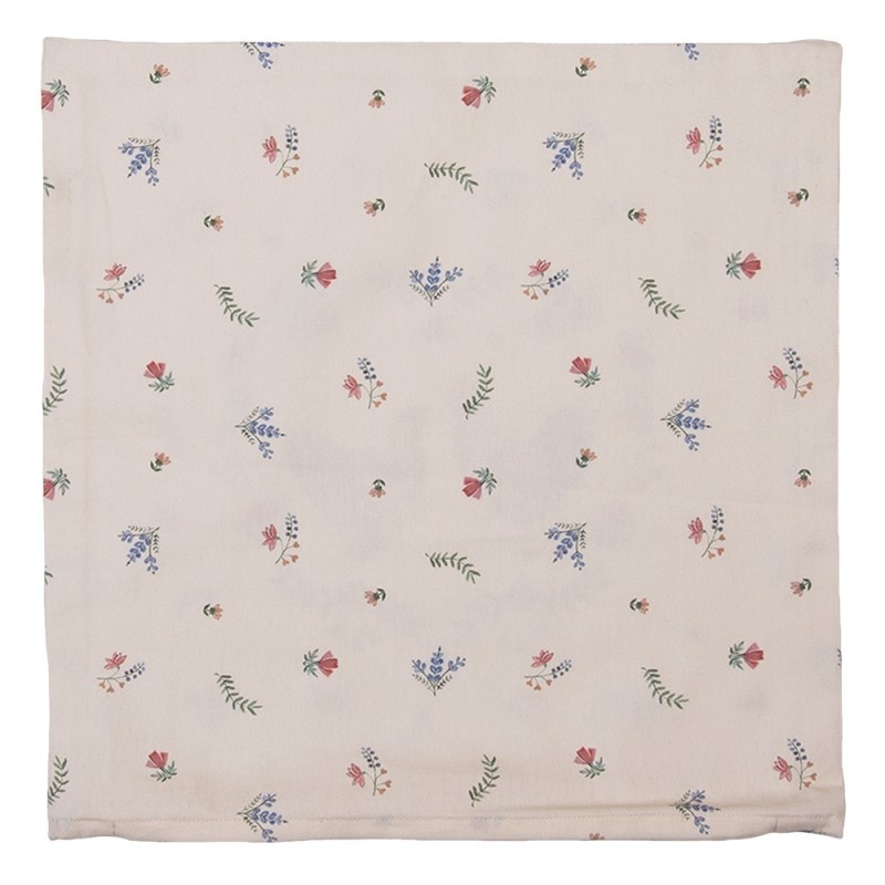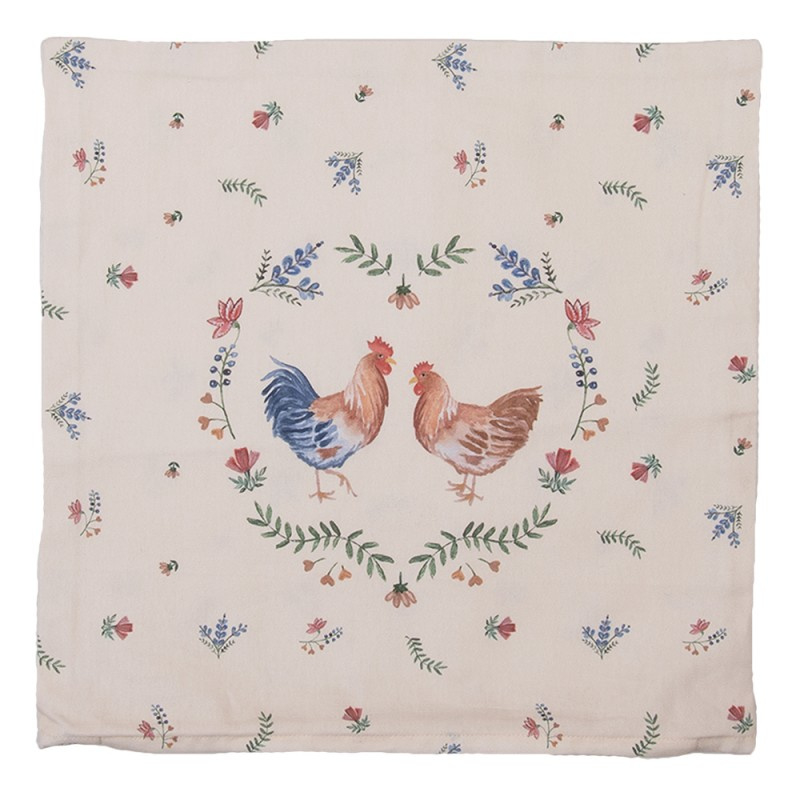 De beige katoenen stof van deze kussenhoes heeft een gezellige print van kleine bloemetjes en een kip en haan. Super leuke textielserie voor in de landelijke keuken of eetkamer!