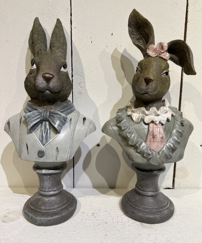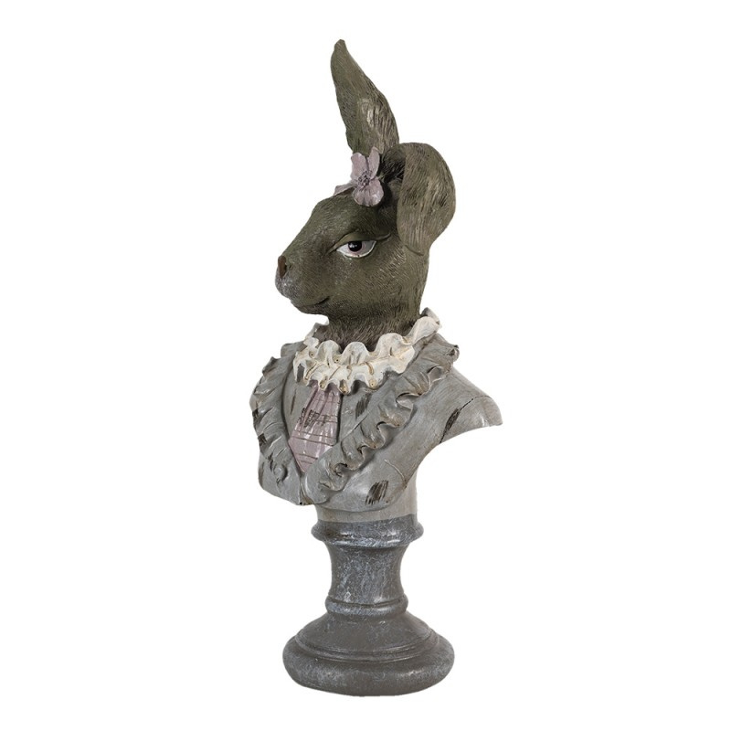 Wat een schatje dit borstbeeld van mevrouw konijn met een leuk roze bloemetje tussen de oren!