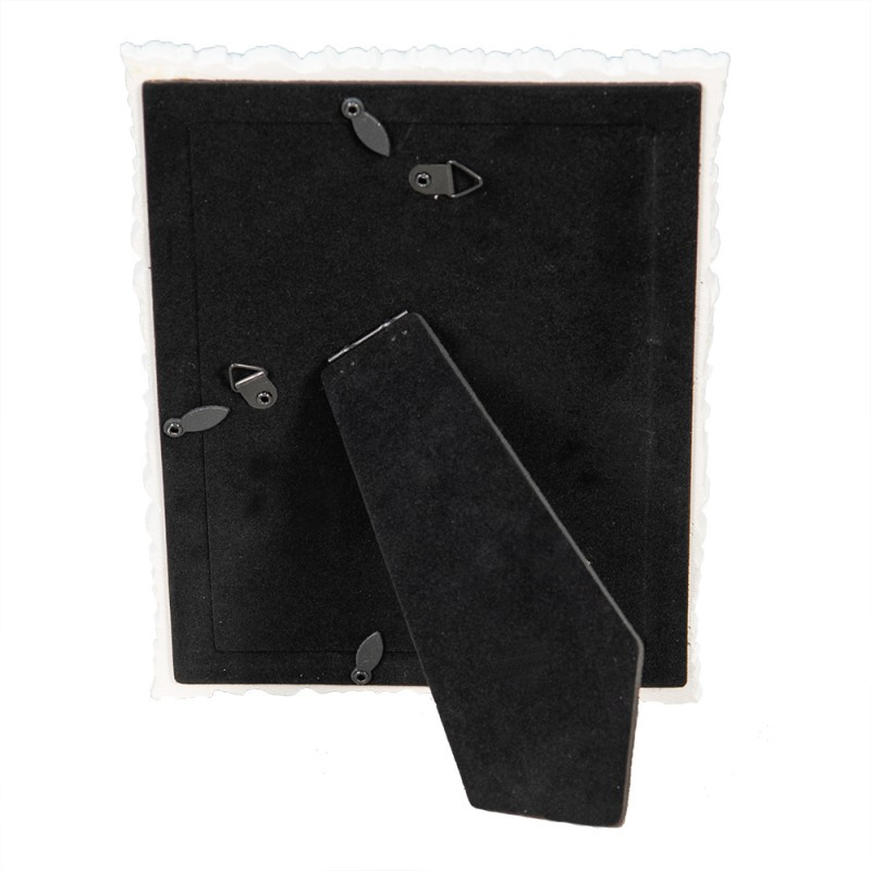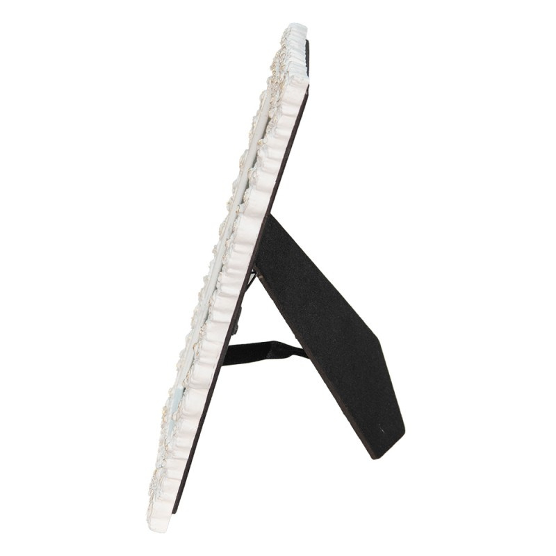 Mooie fotolijst in een romantische sfeer, op de rand bevinden zich allemaal kleine bloemetjes. De fotolijst is wit, geen spierwit en heeft een beetje goudkleur op de blaadjes van de bloemetjes.
