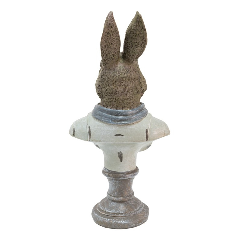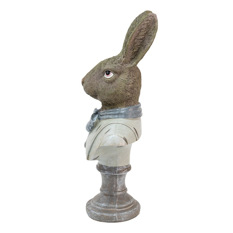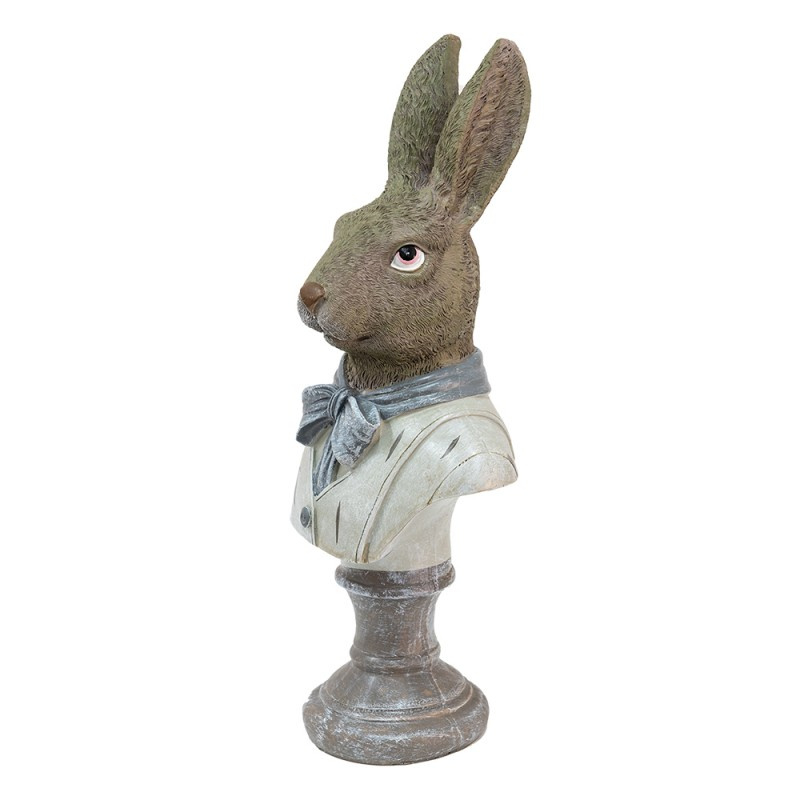 Wat een leuke decoratie dit borstbeeld van meneer konijn met een leuk blauw strikje om de hals!