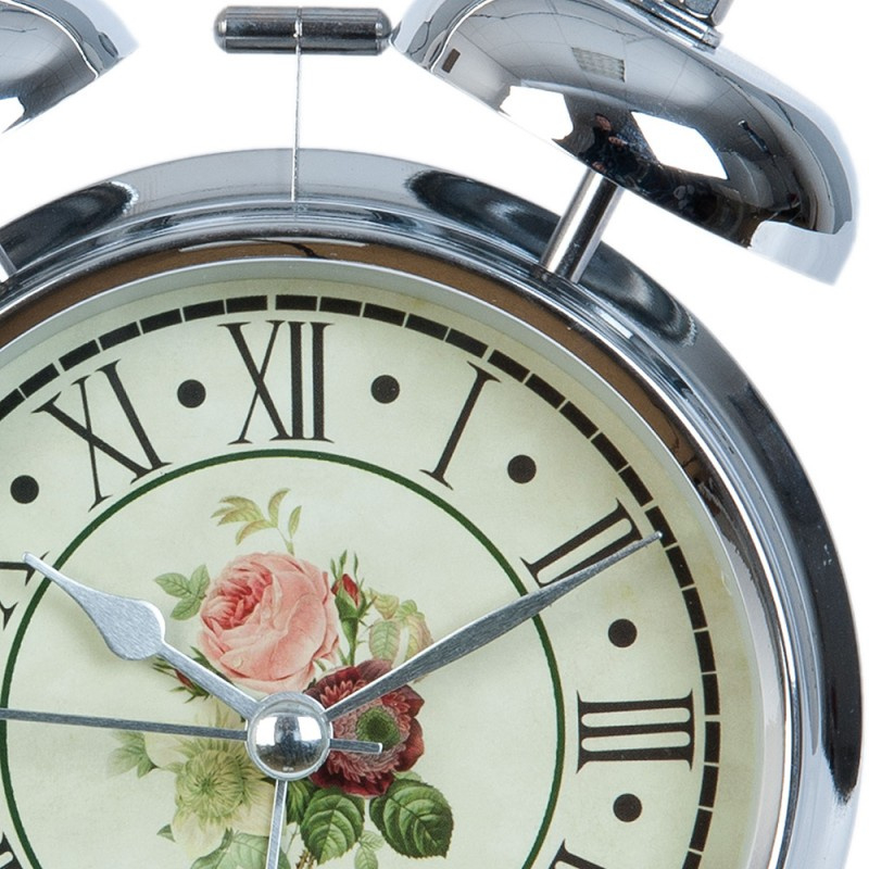 De wekker heeft een mooie rozenprint en Romeinse cijfers. Verder is de wekker voorzien van een secondewijzer en is instelbaar zodat je op de juiste tijd wakker wordt. Aan de achterkant van de wekker zit een drukknopje waarmee er een lampje aan gaat.