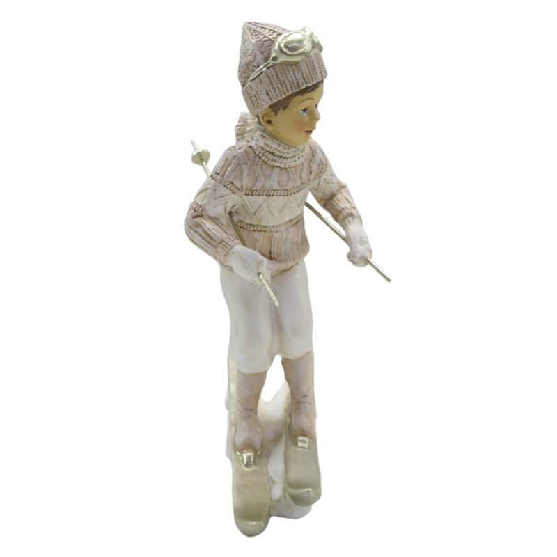 Mooie decoratie van een jongen al skiënd in wit en zacht roze kleuren!