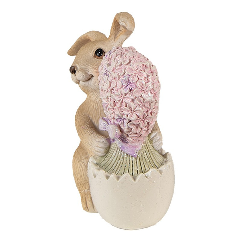 Decoratief lief beeldje van een konijn met een hart in een half ei. Het hart is voorzien van kleine roze bloemetjes.