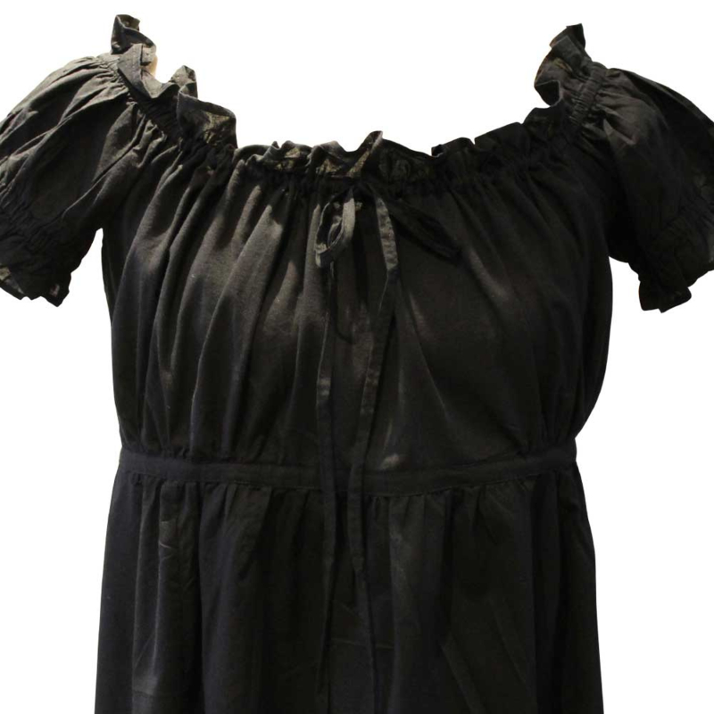 Darcy is een mooi romantisch nachthemd met korte mouwen in het zwart. Het model heeft een halslijn met ruches en een kort met trekkoord om zo de halslijn te bepalen. De korte mouwen met elastische ruches kunnen zowel op de schouder of als off-shoulder kunnen worden gedragen. Als toegevoegde bonus kan Darcy ook dienst doen als een lichte en luchtige zomerjurk, perfect voor de stranddagen.