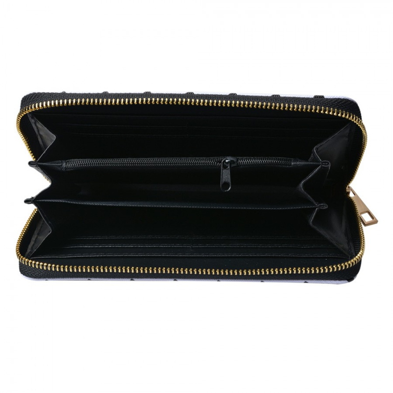 Handige en leuke portemonnee met veel opbergruimte. Gemaakt van een goede kwaliteit kunstleer met een leuke print van kleine zwarte hartjes op een witte achtergrond.