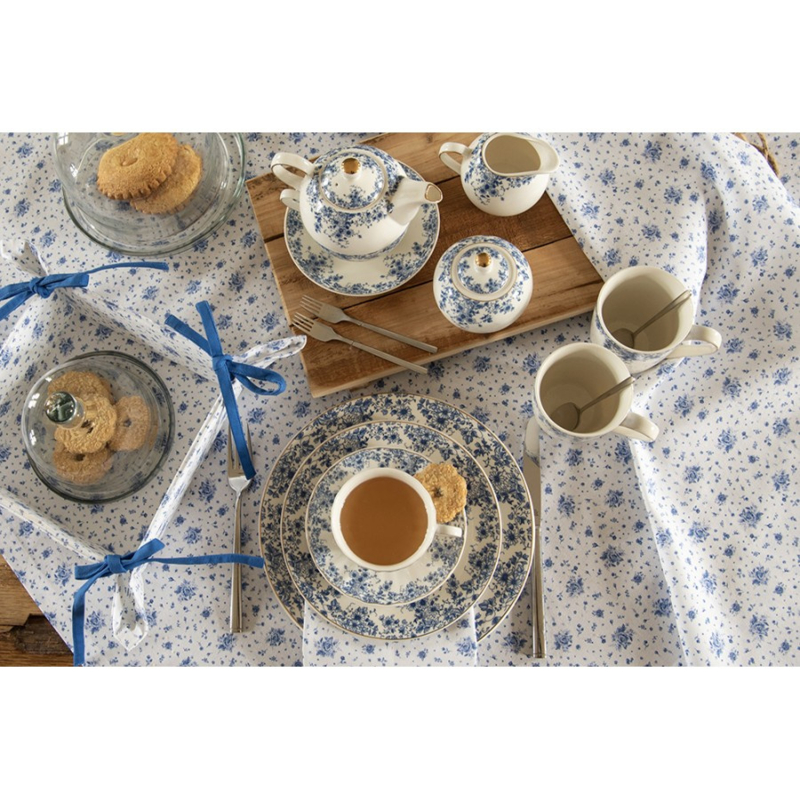 Deze kleinere textielserie Blue Rose Blooming van Clayre & Eef staat helemaal in het teken van de blauwe roos. Deze eenvoudige maar zeer sfeervolle textielserie is voorzien van een prachtig vormgegeven rozenpatroon in een delfsblauwe kleur. Het blauwe accent in de biezen maakt het plaatje compleet. Bovendien zorgt de witte ondergrond voor een frisse look. Het is een zeer complete serie met items als tafelkleden, tafellopers, placemats en servetten. Voor in de keuken zijn er keukendoeken, pannenlappen, een keukenschort en ovenhandschoenen verkrijgbaar. Daarbij is deze textielserie heel goed te combineren met het prachtige servies Blue Rose Blooming