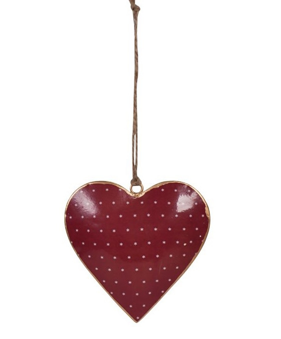 Hangend metalen hart sterretjes rood 10 cmHangend metalen hart sterretjes rood 10 cm