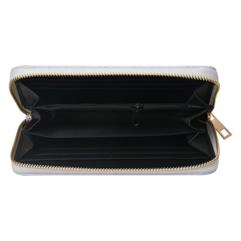 De portemonnee sluit met een goudkleurige rits en heeft 3 vakken waarvan 1 met rits. Daarbij is er veel ruimte voor pasjes en je mobiel past erin!