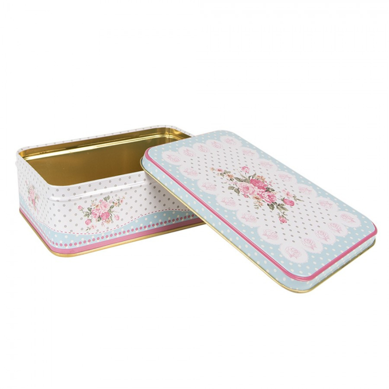 Om kleine spulletjes in op te bergen heb je nooit genoeg! Leuke set met 3 blikken in een romantische stijl, voorzien van roosjes en dots.