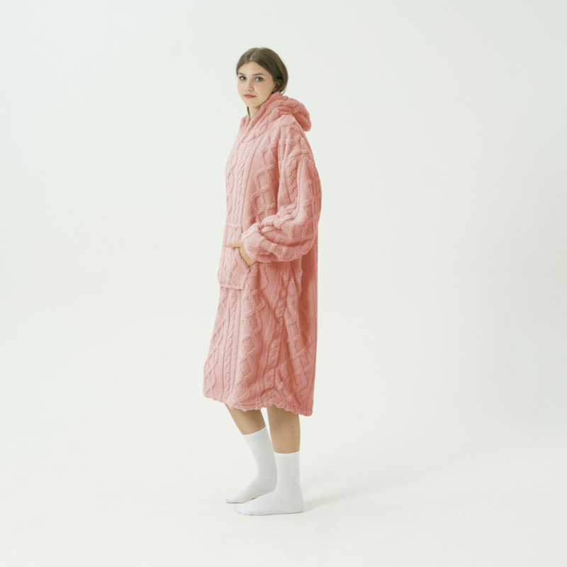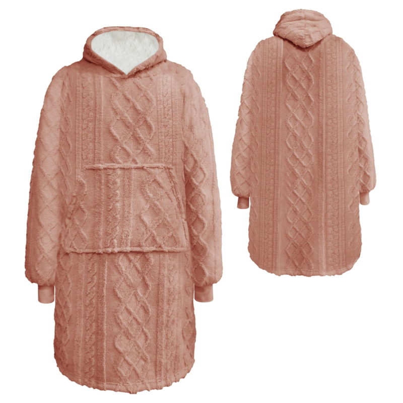 Deze oversized hoodie deken heeft een ingebreid kabel patroon aan de buitenkant en is voorzien van een zachte sherpa stof aan de binnenkant. Kortom hoodie deken Sophie, oftewel Snuggie Sophie is dé perfecte outfit voor een stijlvol avondje relaxen.