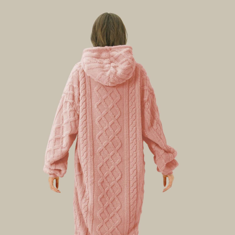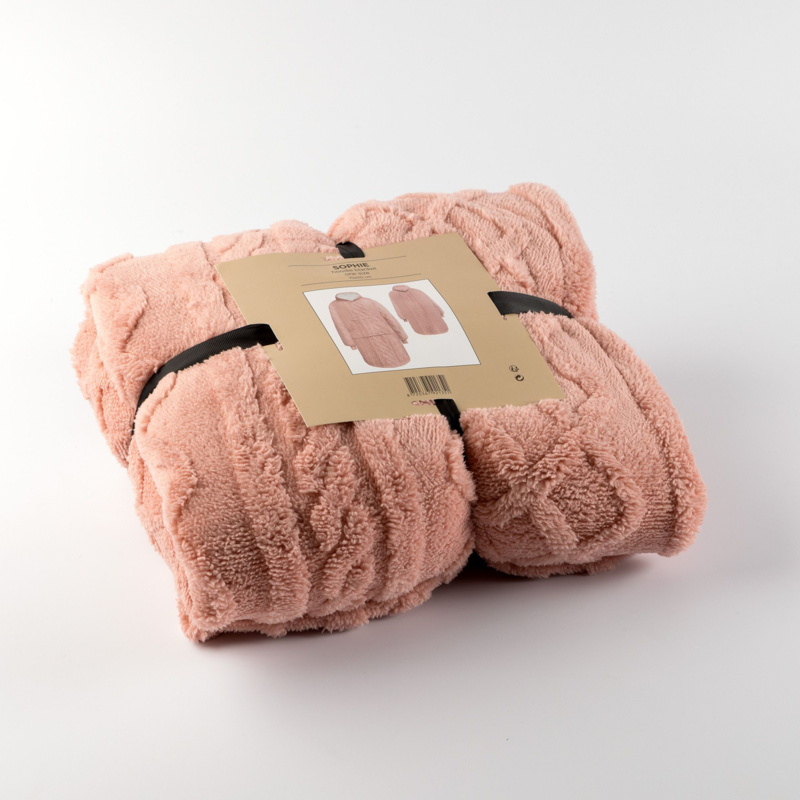 Deze heerlijke hoodie deken Sophie - is dé oplossing voor als je op zoek bent naar een lekker warme fleece deken met mouwen en kabeltrui in één. Deze zachte snuggle hoodie (knuffeltrui) trek je eenvoudig aan. Het luxe ingebreide kabelpatroon zorgt ervoor dat je het niet alleen lekker warm hebt op de bank, maar ook dat je stijlvol door huis kunt lopen zonder het koud te krijgen. De mouwen zijn mooi afgewerkt met een boord, zodat ze niet in de weg zitten.