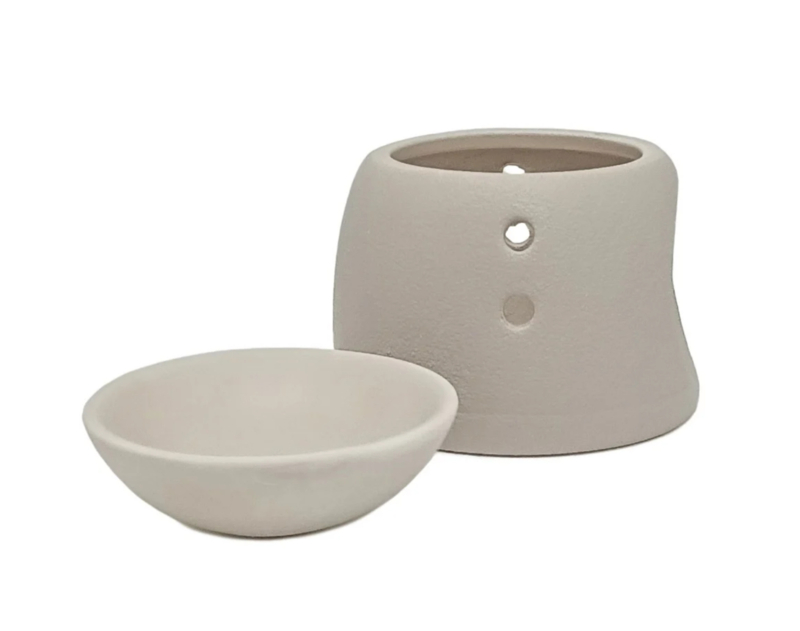 Mooi rustig model geurbrander die ook door de zandkleur past in elk interieur, ideaal om de rasp (schraapsel van amberblokje ) te branden voor een nog intensere geur. Het cupje kan los van de brander.