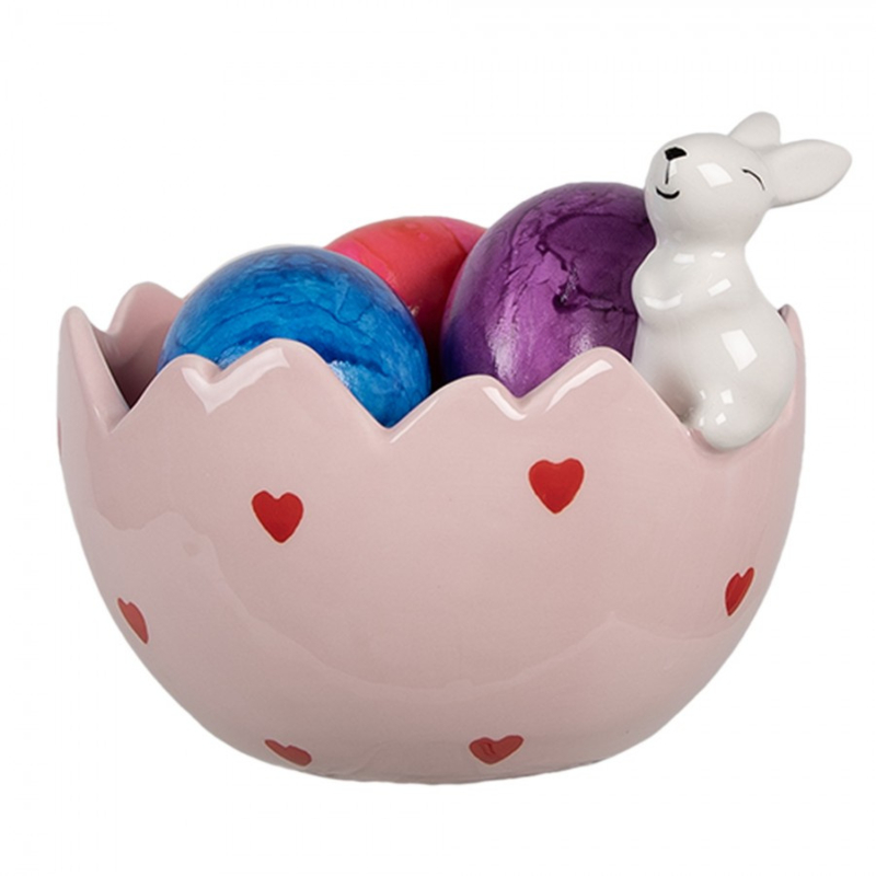 Super leuk schaaltje/kom in de vorm van een half ei. Op de rand zit een wit konijntje en op de kom vind je rode hartjes.