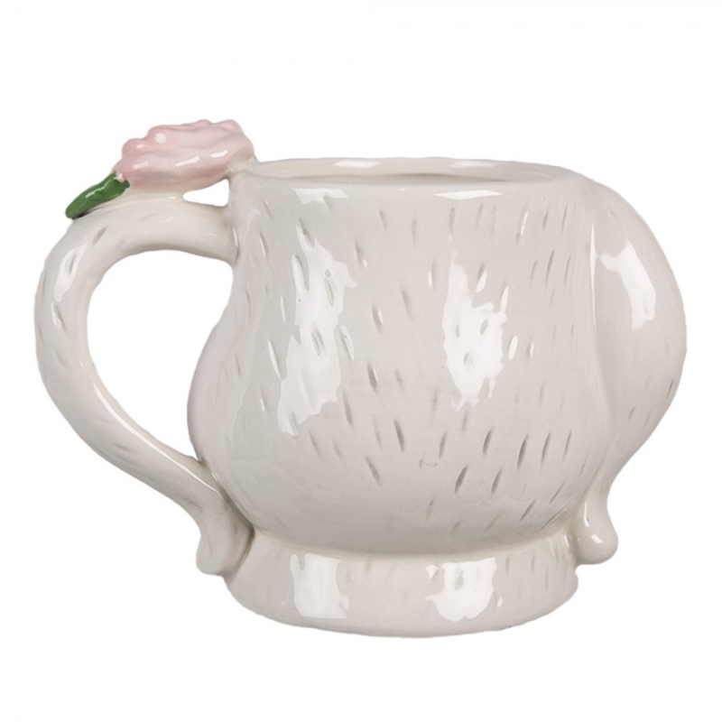 Praxhtige mok in de vorm van een konijn, bovenop het handvat vind je een mooie roos! Door de ruime inhoud van 450 ml is deze naast koffie of thee ook gemakkelijk voor soep te gebruiken!