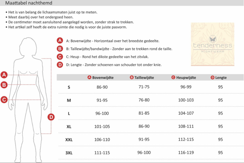 Dit dames nachthemd is van het merk Tenderness en is gemaakt van 100 % gekamde Katoen. Het nachthemd is gemaakt in een draagbare en rekbare jersey kwaliteit. Het geheel met roosjes geprinte nachthemd heeft een ronde hals met een rekbaar boordje. De hals is afgewerkt met een flatlock steek. Merknaam geborduurd op de borst. Lange mouwen met fijne boorden.