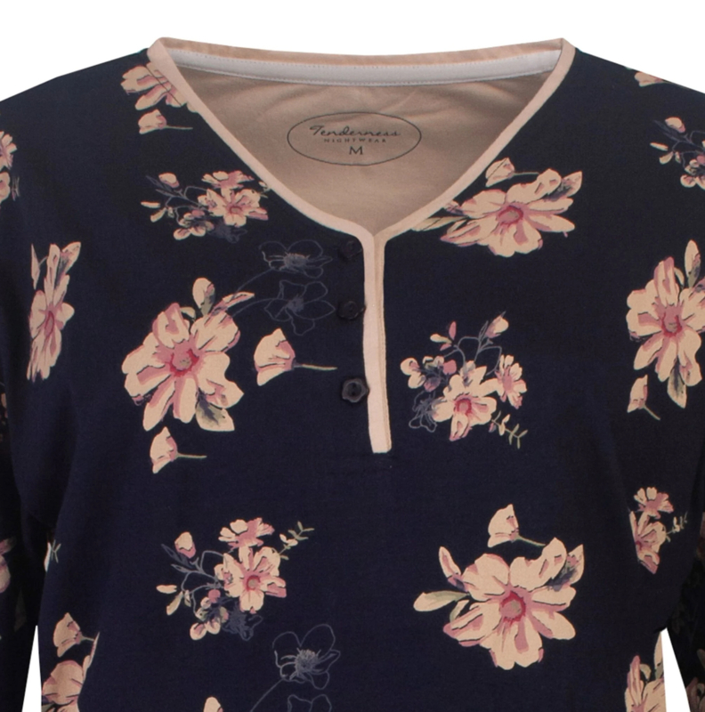 Dit dames nachthemd van het merk Tenderness is gemaakt van 100 % gekamde katoen en het nachthemd is gemaakt in een draagbare en rekbare jersey kwaliteit. Het nachthemd is geprint in een mooi gebloemd dessin in een romantische stijl.