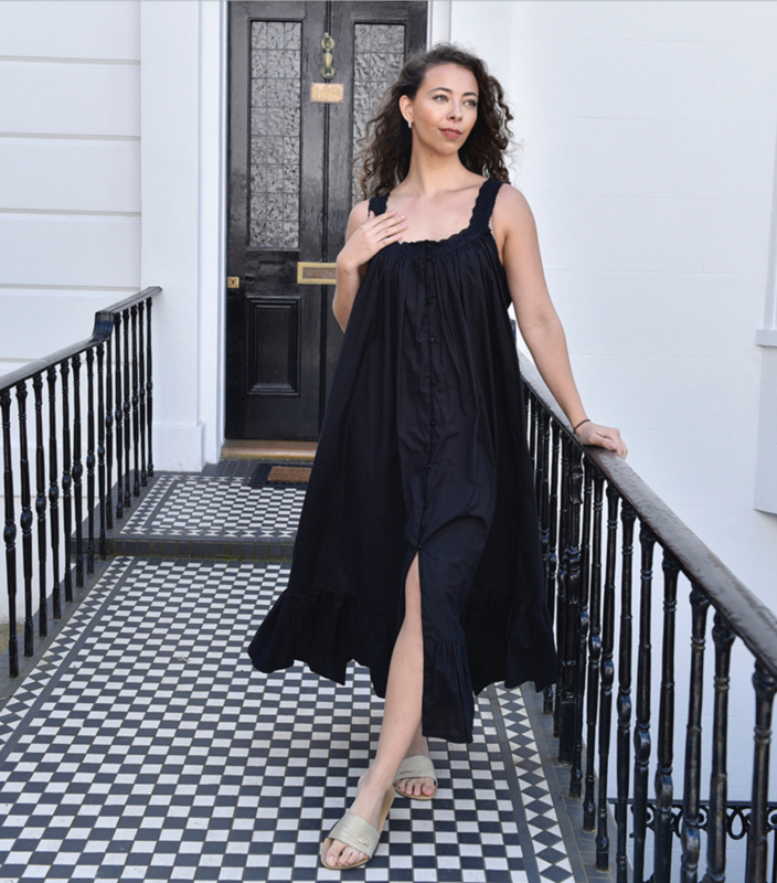Doordat het nachthemd in het zwart is kan het ook gemakkelijk als jurk gedragen worden!