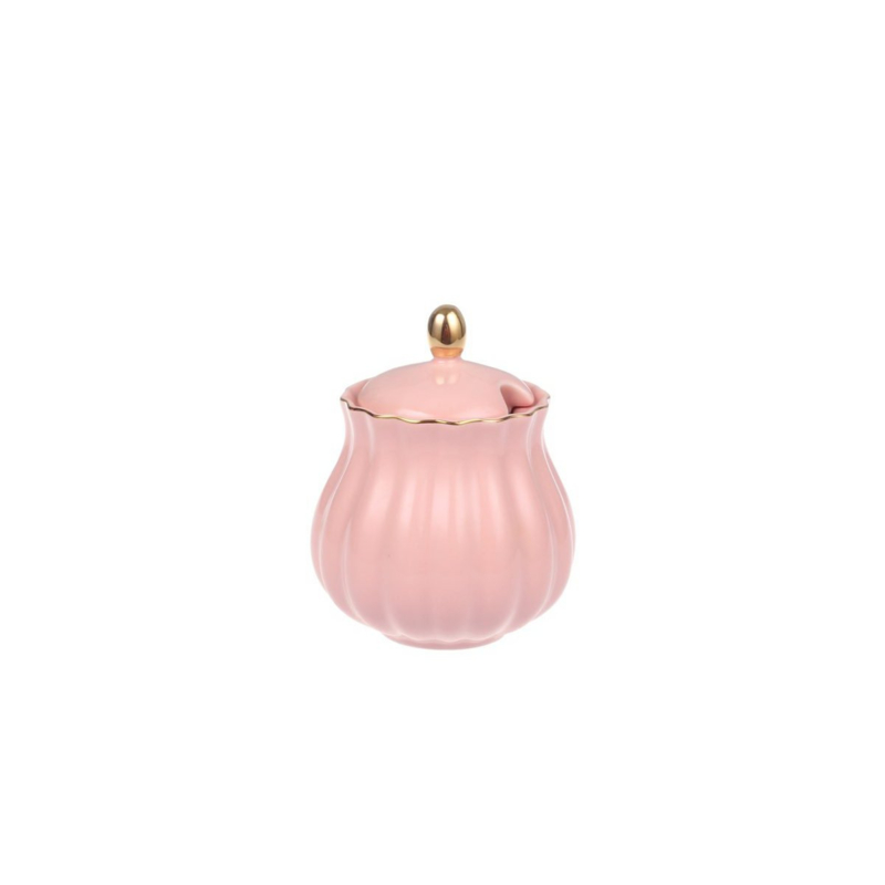 Artikelnummer: ROY910Melkkan en suikerpot Royal Rose roze/goud