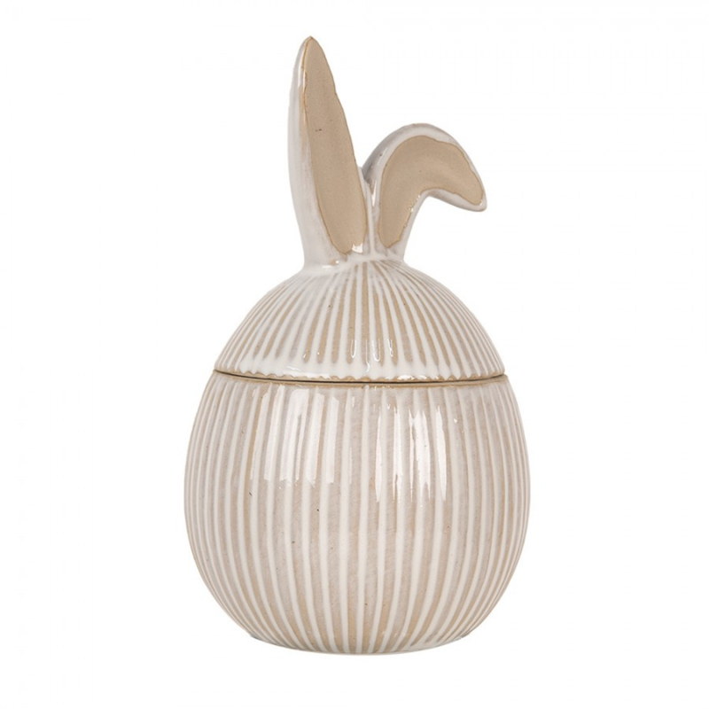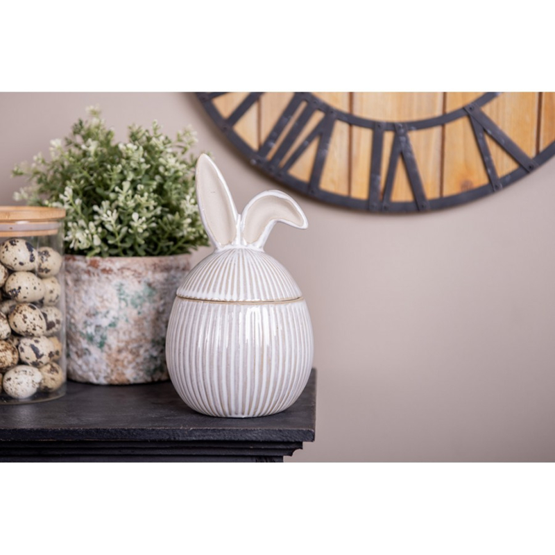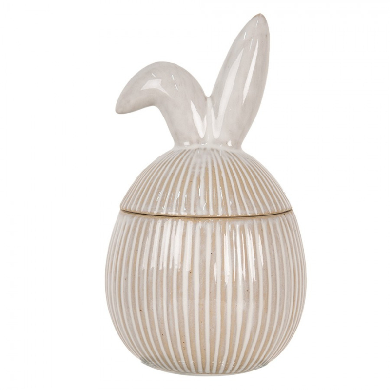 Super leuke bonbonière of voorraadpot met deksel, in een landelijke stijl. De pot is voorzien van schattige oortjes. Ook perfect om paaseitjes in te bewaren.