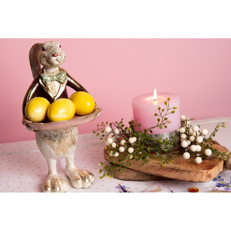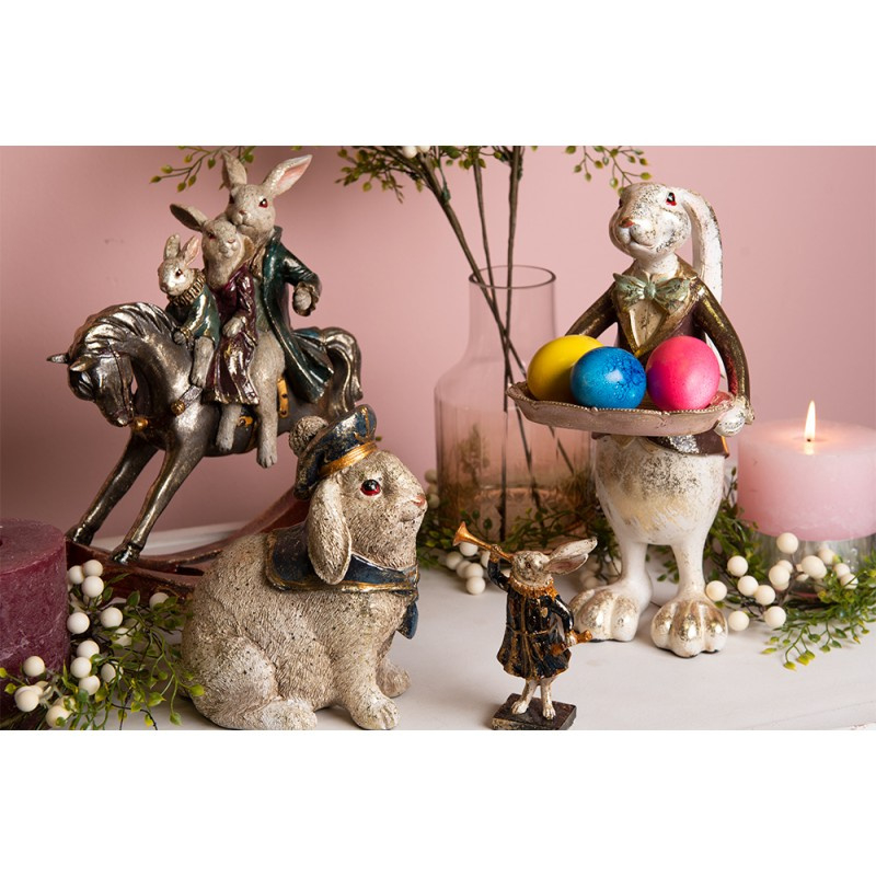 Een prachtig konijn met een strikje om in mooie kleuren en afgewerkt met een gouden glans!