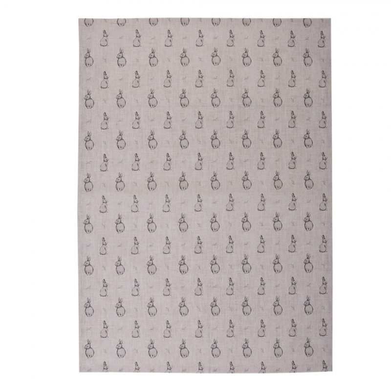 Maak kennis met de betoverende textielserie met lieflijke konijntjes op een linnen look ondergrond, verfraaid met grijze kleuraccenten.