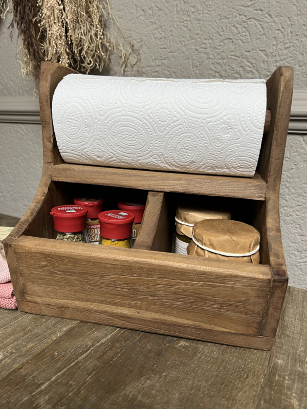 Houten keukenrolhouder met 2 vakken 27*28*20