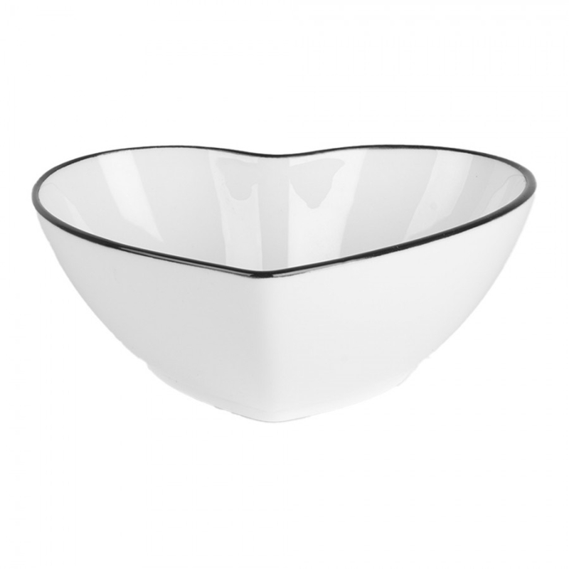 Wit schaaltje/kom gemaakt van keramiek in de vorm van een hart! Perfect voor het serveren van kleine lekkernijen of sausjes.