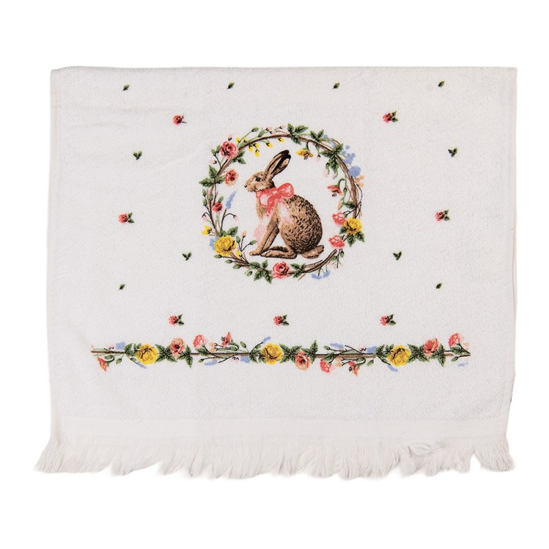 De textielserie is gemaakt van katoenen stof met een beige ondergrond en een design van een mooie krans met daarin een haas met een roze strik. De krans heeft allemaal bloemetjes, roosjes en blaadjes. Verspreid over de stof vind je ook kleine roosjes en blaadjes. De meeste items van deze serie zijn afgewerkt met een roze band.